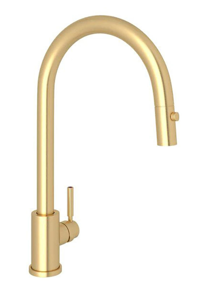 Rohl Perrin Rowe Holborn English Gold C-Spout Pull-Down Faucet